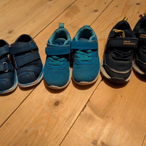 5 par sko i str 22/23 fint brukt med unntak av de blå sandalene av merket move mountain, de er noe mere brukt. Selges samlet. Brukt til ett barn. Kommer fra røyke og dyrefritt hjem. Veldig kjekk pakke med sko nå til våren og sommeren.