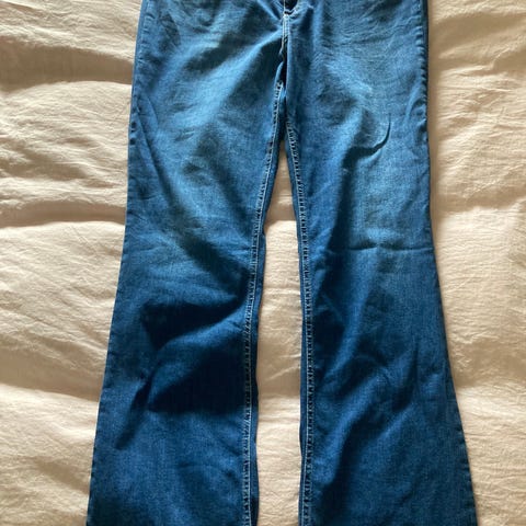 Buksa er i størrelse 40 med livvidde 77 rundt . Modellen er en skinny jeans Jade med stretch, som gir en tettsittende passform. Klassisk femlommersdesign med beltehemper, knapp og glidelåslukking foran. Materialet er denim med elastiske fibre for bedre bevegelighet.