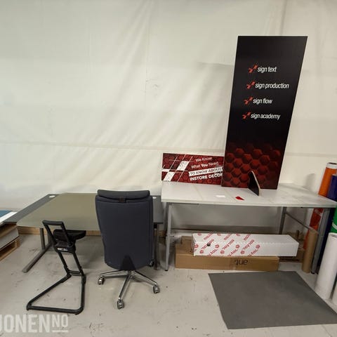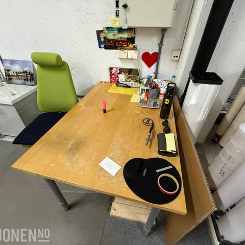 Selger komplett mindre kontoroppsett slik det fremstår på bilder. Passer godt til brakke, verkstedkontor, lagerkontor eller mindre bedrift.Innhold