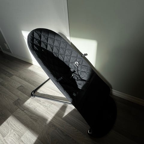 BabyBjörn vippestol. Stofftrekk er slitt, men fungerer ellers