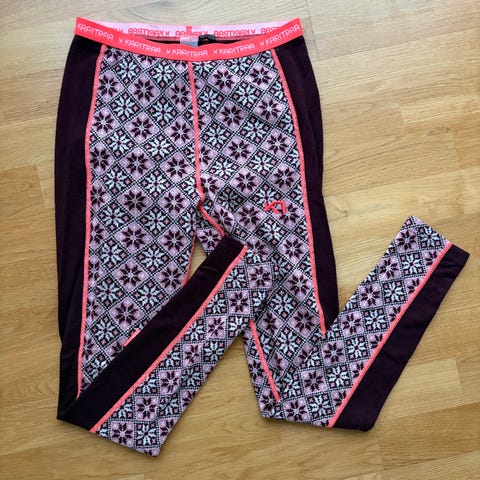 Ulvang ullongs for dame i størrelse M. Longsen er laget i merinoullblanding, med hovedandel ull for god isolasjon og komfort. Fargen er blå med rosa detaljer og sømmer, samt mønster i stoffet. Elastisk linning med Ulvang-logo. Egnet som innerste lag ved ulike utendørsaktiviteter og til hverdagsbruk når det er behov for et varmt og funksjonelt ullplagg.