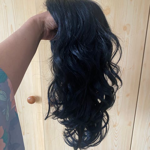 Nøkkelord: parykk, halloween, kostyme, utkledning, fest, outfit, party, temafest, cosplay, hårtilbehør, lang parykk, farget parykk, styling, gaveidé, anime, alt, goth