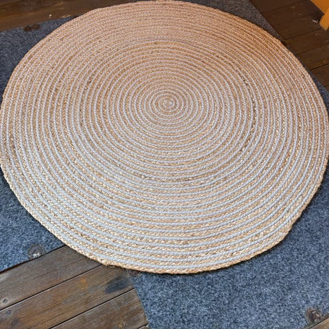 Jysk rundt teppe SANDELTRE Ø120 natur/grå i naturfarget jutestil selges billig.