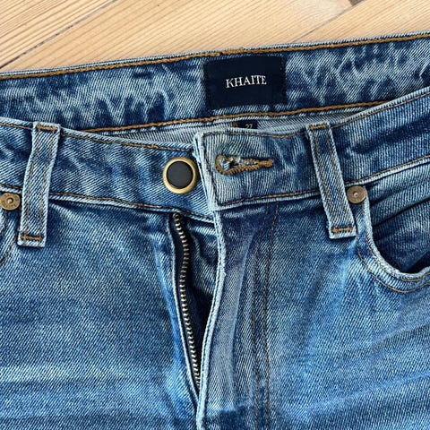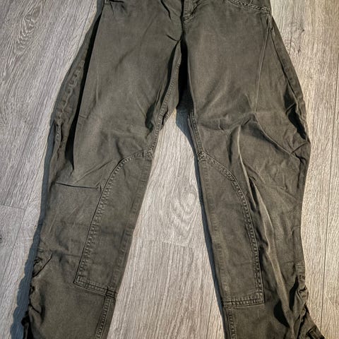 Patrizia Pepe jeans for dame i størrelse S med livvidde W27. Buksen er i grønn denim og har flere detaljer, blant annet glidelåslomme foran, dekorative legg og sømmer, samt broderte baklommer. Materialet er denim, som gir et robust og strukturert uttrykk. Passer som hverdagsbukse eller til mer avslappede antrekk.