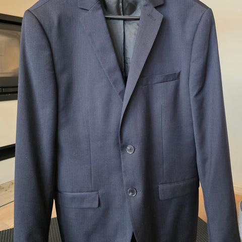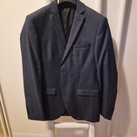 Selected dressjakke for herre i størrelse 46. Jakken er grå og laget i polyester. Klassisk modell med jakkeslag, knappelukking foran og lommer. Egnet til bruk som del av dress eller som enkel blazer til formelle og semi-formelle anledninger.