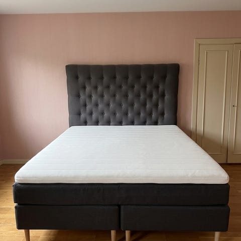Denne soveromsengen er i veldig god stand. Den 180x200 cm og er grafittfarget. Den vil bli vasket før henting.