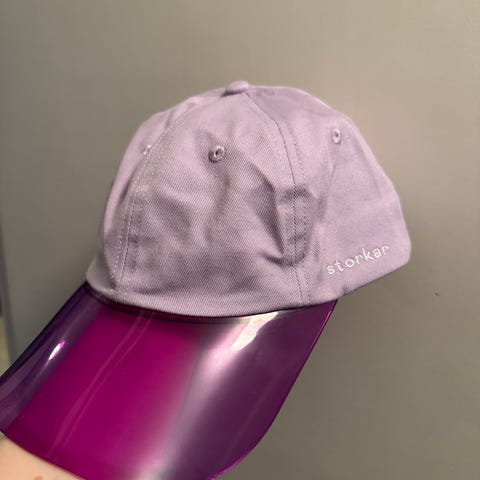 Monki caps i rosa bomull, one size. Klassisk baseballfasong med buet brem og justerbar stropp bak for tilpasning til hodeomkrets. Brodert motiv med regnbue og skyer foran. Laget i bomull som gir et mykt og behagelig materiale egnet til hverdagsbruk.