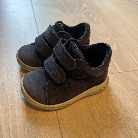 Pent brukte overgangssko i skinn fra Ecco. Farge er mørk blå. Str 25.