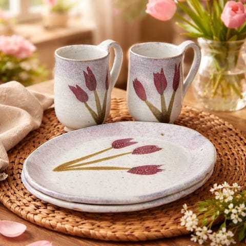 Zeller Keramik - kopp, tefat og tallerken, med nydelige sauer på.