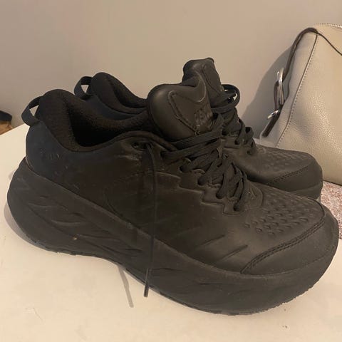 Hoka Clifton 9 joggesko i størrelse 40. Modellen er en nøytral løpe- og joggesko med overdel i pustende meshmateriale og kraftig dempet mellomsåle. Fargen er helsvart, med snøring foran og gummisåle med godt grep. Passer til løping, trening og hverdagsbruk der man ønsker en lett og dempet joggesko.