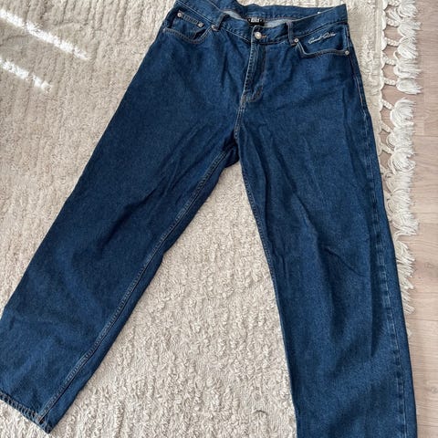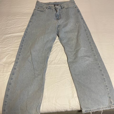 Fin stand, men en liten svart prikk på kneet (går muligens bort) og noe slitasje nederst bak benet.