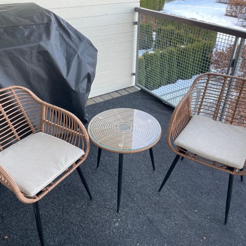 Selger et sett med bord + 2 stoler.