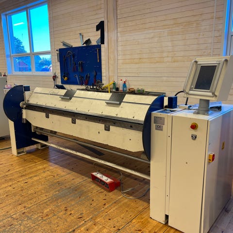 Den har i tillegg to ekstra sidebord med ruller som til sammen utgjør 3 meter. (1m+2m).