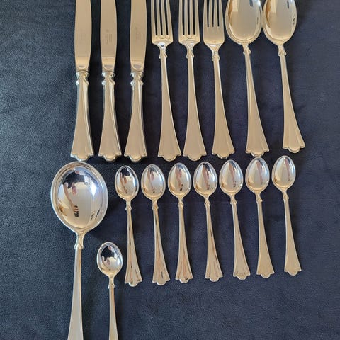 830s, ekte sølv, sølvbestikk, norsk sølv, 925s, sterling, lillemor, lillemor bestikk, lillemor mønster, serveringsbestikk, serveringsskje, serveringsgaffel, spiseskje, teskje, kaffeskje, dessertskje, suppeskje, sausøse, øse, koldgaffel, spisegaffel, dessertgaffel, kakegaffel, kniv, smørkniv, kakespade, sukkerklype, sukkerskje, fiskespade, salatbestikk, vintage, samler, skrappris, skrapverdi, sølvpris