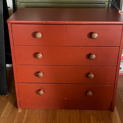 Hel og fungerer som den skal, men øverste skuffen er "dekorert" med kuler som vist på bildet. Mye bruk igjen allikevel.