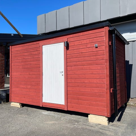 Letthus-brakke med pauserom og lager.
