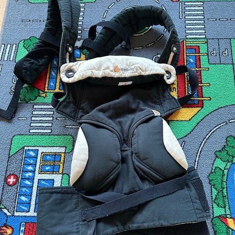 Selger Ergobaby Four Position 360 bæresele i fargen Black & Camel, med nyfødtinnlegg.
