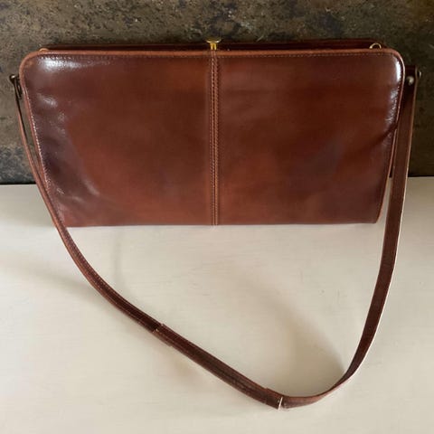 håndtak med metallfargede detaljer. Den har klaff med trykknapplukking og innvendig rom med glidelåslomme. Kan brukes som en clutch veske eller som håndveske til hverdagsbruk eller mer formelle anledninger