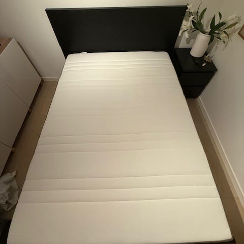 Ikea Sultan Silsand 120x200 rammemadrass med overmadrass. Overmadrassen på 5 cm har avtakbar trekk som kan vaskes. Trekket er vasket på 60°. Sengen er blitt brukt som gjesteseng å den er i fin stand, er med ben på 20 cm.