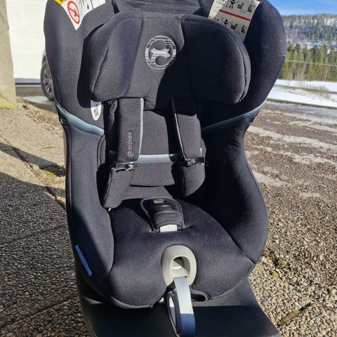 Cybex Sirona S2 bilbarnesete for barn opptil ca. 18 kg. Setet er svart med integrert base og støtteben. Det har intern 5-punkts sele, justerbar nakkestøtte og polstrede sidevinger. Barnesetet kan roteres på basen for enklere inn- og utstigning, og kan brukes både bakovervendt og forovervendt i bilen, avhengig av barnets vekt og høyde samt bilens godkjenning. Passer i biler med ISOFIX-fester der dette er godkjent av bil- og seteleverandør.