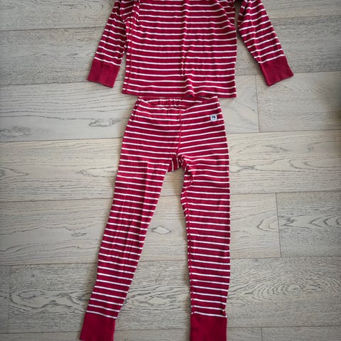 Polarn O. Pyret sett for jente i størrelse 104. Sett med langermet overdel og bukse i rosa og hvite striper. Mykt og behagelig materiale egnet som nattøy eller koseklær. Det medfølger også et par matchende sokker i rosa med antiskli under.