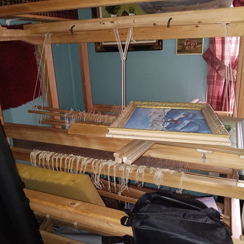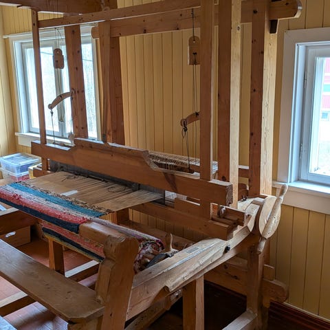 Solid, gammel vevstol i god stand. Komplett med hester, trinser og renning som står klar. Skjebredde 100 cm. Vevstolen er stabil, fullt funksjonell og kan demonteres for transport. Skytler og garnvinde medfølger. Har også endel jarekanter . Veven er perfekt for både nybegynnere og erfarne vever. Selges pga flytting.