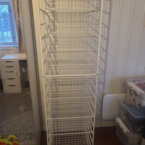 Selger 2 stk solide mesh-skuffer fra Elfa. Perfekt til garderobesystem, bod, skap eller annen organisering hjemme. Den åpne nettingkonstruksjonen gir god oversikt over innholdet og god lufting, noe som gjør dem ideelle til klær, utstyr eller diverse oppbevaring.