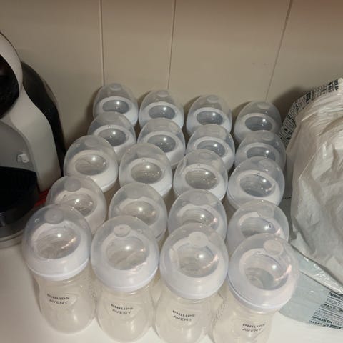 2 store og 3 små flasker + et ekstra lokk.