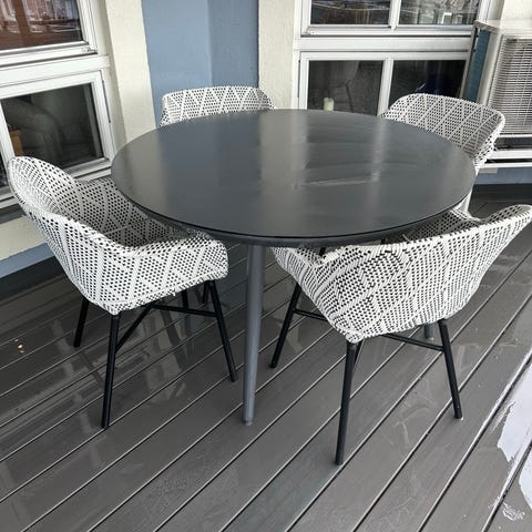 Rund utebord i tre og metall understell