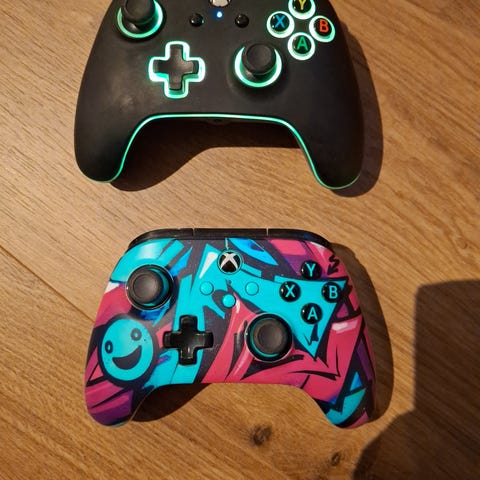 2 er fra serie S konsoll og 1 er fra series x, ene er fra xbox one? De 3 øverste har den flotte kjennskapet til drifting, og den 4 er noe med klen knapper.. husker ikke helt.