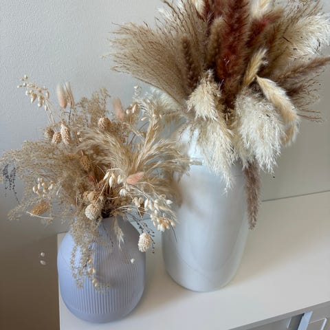 Vase med tørkede blomster/pampas selges samlet.