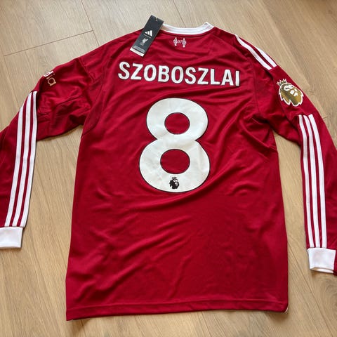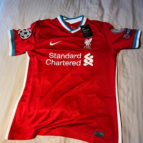 Liverpool FC treningsgenser i rød farge med klubbemblem og sponsorlogo på brystet. Genseren passer til bruk ved trening eller fritid for supportere av klubben. Materialet er trolig en teknisk syntetisk blanding som tørker raskt og gir god bevegelsesfrihet. Passform og størrelse er ikke oppgitt og bør kontrolleres mot egne mål før bruk.