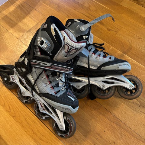 Roces rulleskøyter i størrelse 42. Rulleskøytene har hard yttersko med myk innersko og snøring kombinert med spennelås for bedre passform og støtte rundt ankelen. Fargekombinasjon svart og grå med røde detaljer. Modellen har fire hjul på hver skøyte og bakbrems på høyre skøyte. Egner seg til rekreasjonsbruk på asfalt og andre jevne underlag.