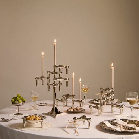&Tradition stoff nagel lysstake i svart utførelse. Lysestaken har et skulpturelt, geometrisk design med flere armer til tynne kronelys. Det er 6 lysestaker pluss fot, sånn som vises på bilder. Selg samler.