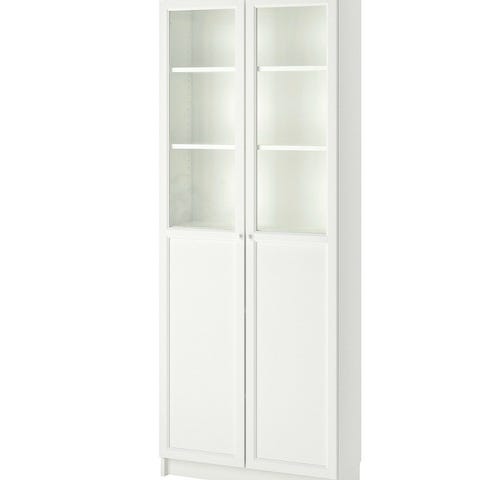 Selger redesignet Billy vitrineskap. Det er malt i fargen minty breeze på utsiden. Dørene er original offwhite. Inne i selve skapet er det lagt tapet på bakveggen. Dette gjør det litt unikt.