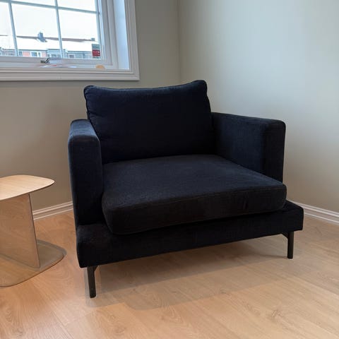 Vurderer å selge to stk Vilmers Alvar lenestoler / loungestoler i fargen Salt og Pepper med svarte stålben. Kjøpt på Bohus i 2022. Selges samlet.
