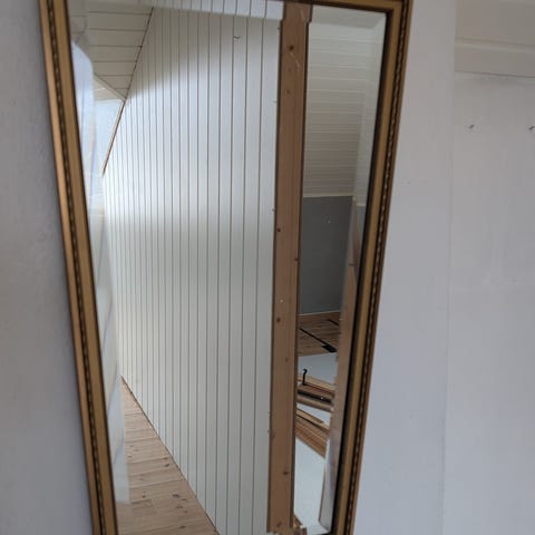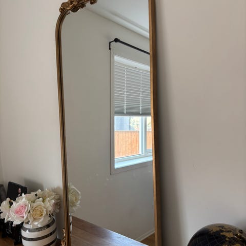 Pent speil med messingramme. Selve glasset er litt tintet, og skaper en fin stemning.