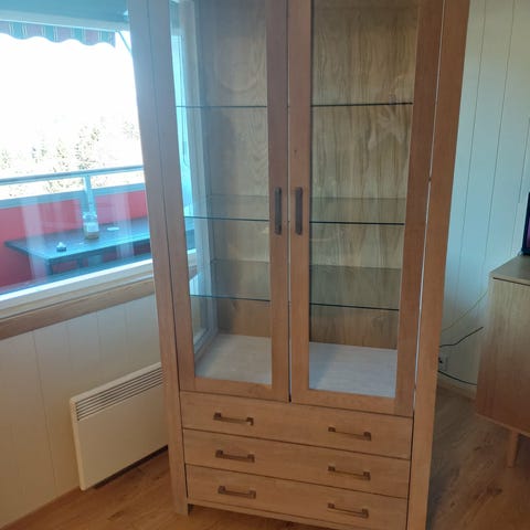 Vitrineskap mørkebrun med glassdør