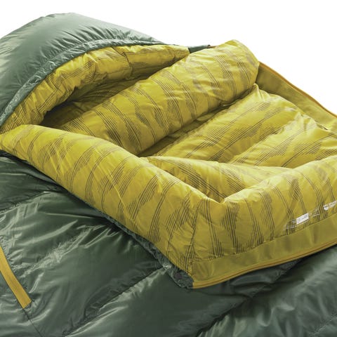 Vintage Ajungilak sovepose fra sent 80tallet/begynnelse av 90tallet. Det er en dun pose, oransje bomullstoff på innsiden, grønn på utsiden. Modellen heter Alaska, tåler sannsynligvis ca. -15.