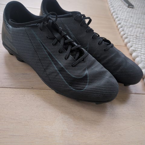 Nike Mercurial fotballsko i svart farge. Overdel i syntetisk materiale med snøring foran. Yttersåle med faste knotter til bruk på gress- eller kunstgressbaner. Veldig gode sko, pent brukt, mye bruk igjen