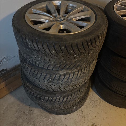 Sett med fire komplette slitte dekk med Toyota originalfelger i sølv. Laget for prius Dekkdimensjon er 205/60 R16, som passer biler som bruker denne størrelsen. Felgene har 5-bolts mønster. Egner seg som vinterhjul eller ekstra hjulsett til bil som er kompatibel med 16-tommers felger og 205/60 R16-dekk.