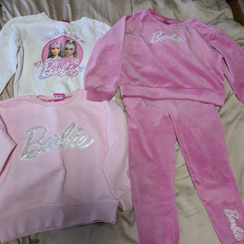 Barbie kjoler x 2, barbie skjørt med topp, barbie tskjorter x 4. Ser ingen anmerkninger.