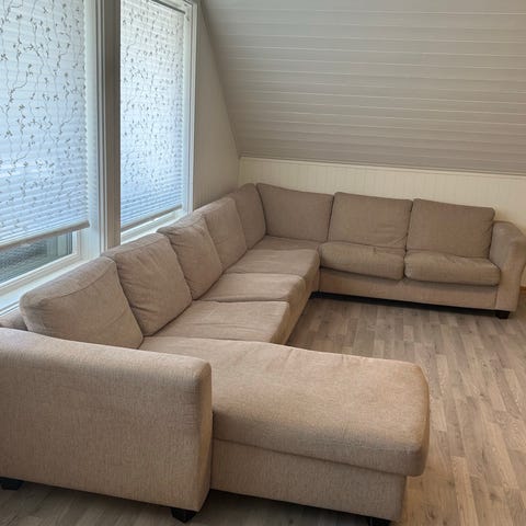 Veldig god og stor sofa . Gis bort da den trenger en rens. Hentes snarest