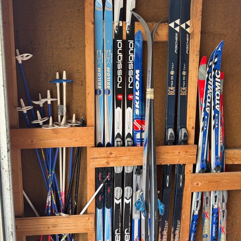 Smørefrie langrennski med staver. Nnn bindinger. Brukt.