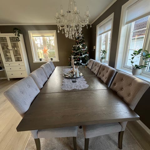 Møblene er pent brukt og selges fordi vi trenger en større spisegruppe. Nobel spisestoler – nypris 5.379 kr per stol. Bordet hadde en nypris på 10.000 kr.