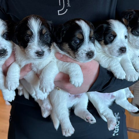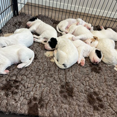 Valpene vil vokse opp på Tangen ved Mjøsa. Der blir de sosialisert med katter, andre hunder, sauer, barn og voksne. Ormekur, helsesjekk, lek ute, tilvenning bilkjøring etc.