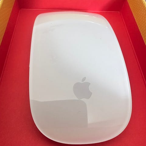 Apple Magic Mouse trådløs datamus i hvit farge. Optisk mus med glatt overflate og berøringsflate på toppen for rulling og enkle bevegelser. Koble til Mac eller annen kompatibel enhet via Bluetooth. Egnet til generell bruk som surfing, kontorarbeid og enkel bildebehandling.