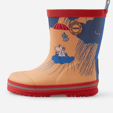 Reima gummistøvler for barn i størrelse 25. Unisex-modell i grønn farge med mønstret innside. Støvlene har drahempe bak for enklere av- og påkledning. Egnet til bruk på regnværsdager og i vått terreng.