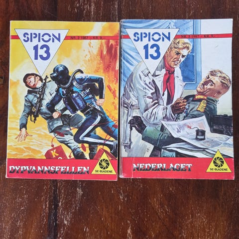 Samling med tegneseriehefter fra seriene Spion 13 og Action-serien. Heftene har krigs- og spiontema med illustrerte omslag. Egner seg for lesere som er interessert i eldre krigsserier og spionhistorier i tegneserieformat.