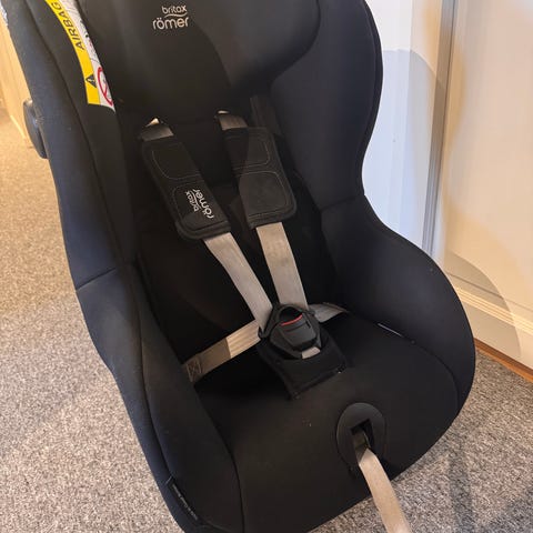 Britax Römer Max-Way Plus barnesete for barn opptil 25 kg kjøpt i 2022. Lite brukt da den kun har vært i besteforeldres bil. Ikke vært i kollisjon. Barnesetet har fempunktssele med polstrede skulderputer og justerbar selestrammer foran. Bruksanvisning og forankringsseler medfølger.